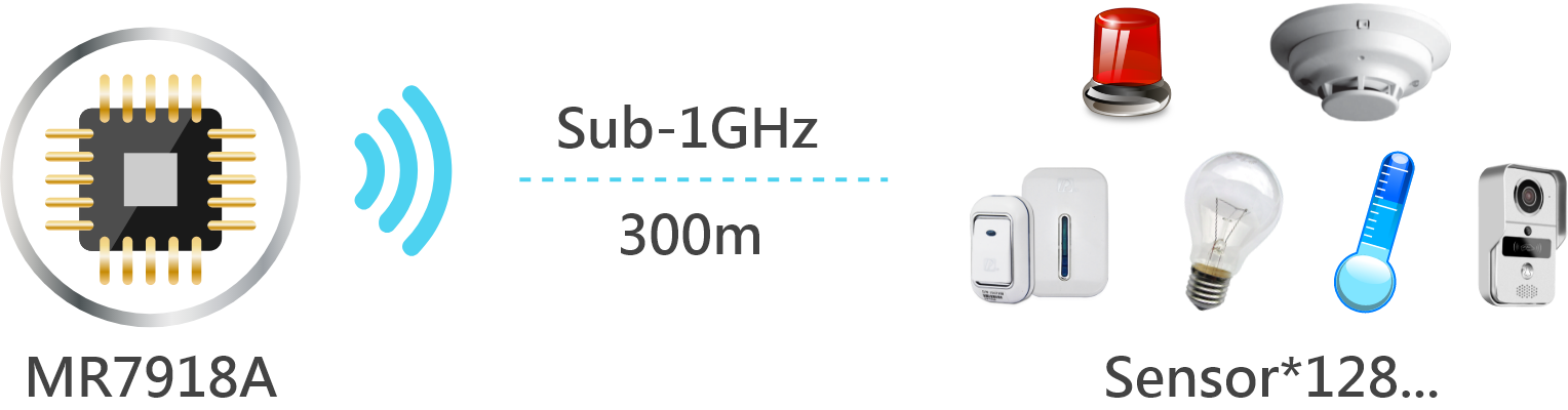 MARS1.0 Sub-1G長距離無線傳輸Data rate可達500K bps,配對可1對128個感測設備施,更配合案場客製化調整傳輸方式及架構