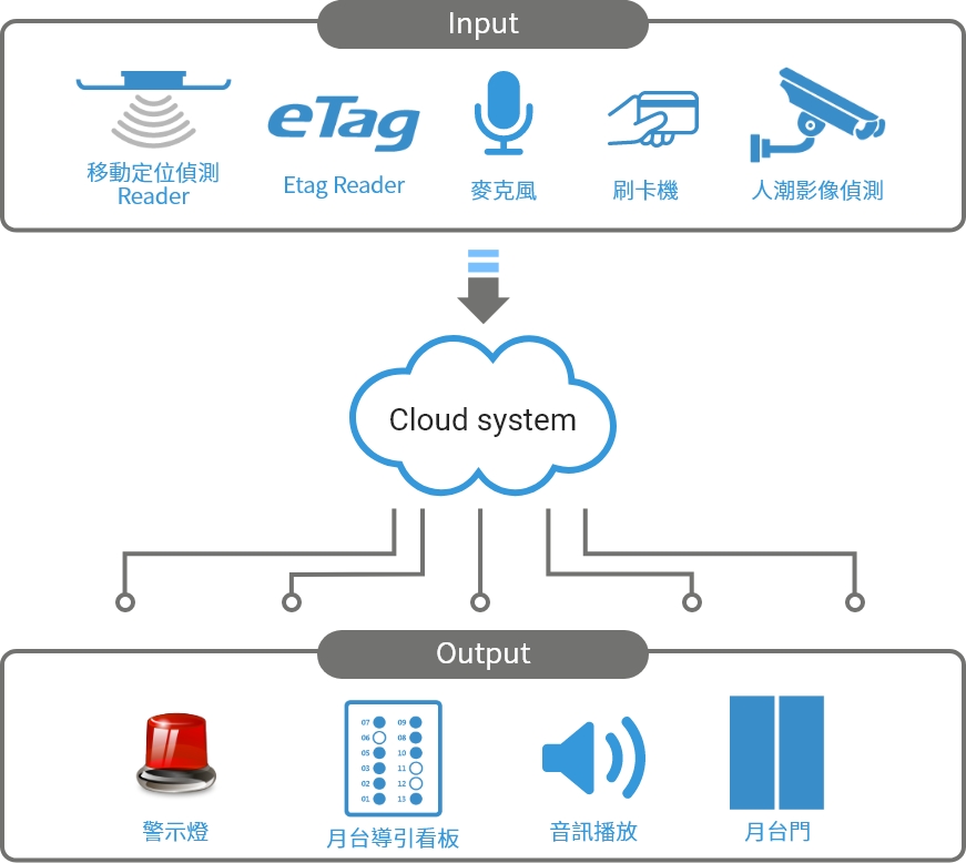 運用雲端運算技術,提供精準及完善的站內訊息讓站務人員確實掌握轉運站內車輛、月台及乘客的資訊。