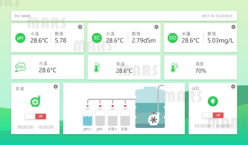 內建各類植栽養液參數資料庫,保證植栽最佳品質、最大產量